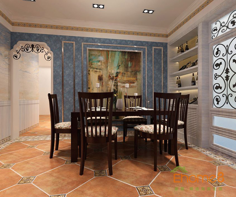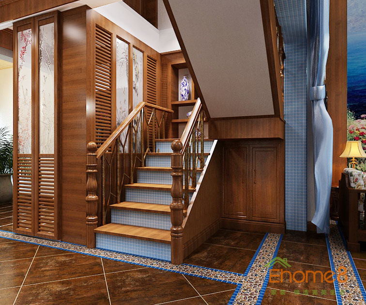 在水一方168㎡躍層地中海原木風格裝修效果圖