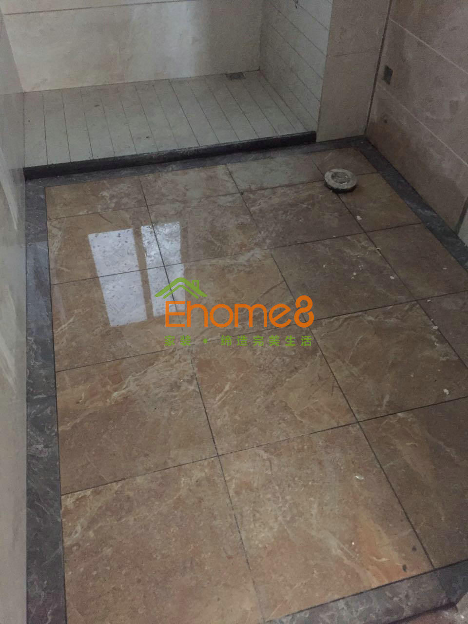 衛(wèi)生間門安裝及衛(wèi)生間有色防水的涂刷及閉水試驗,鋪磚完成。