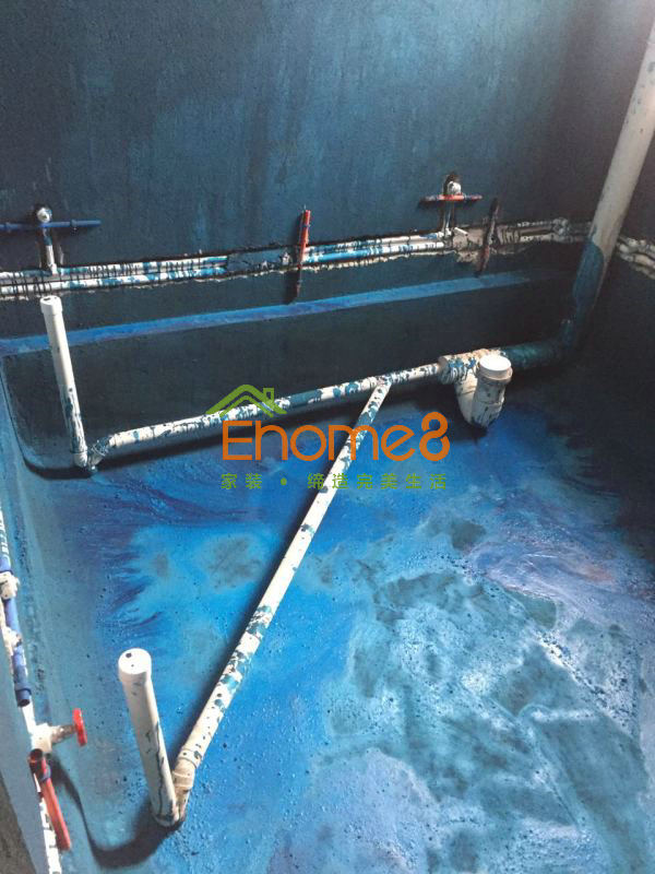 衛生間門安裝及衛生間有色防水的涂刷及閉水試驗、鋪磚等