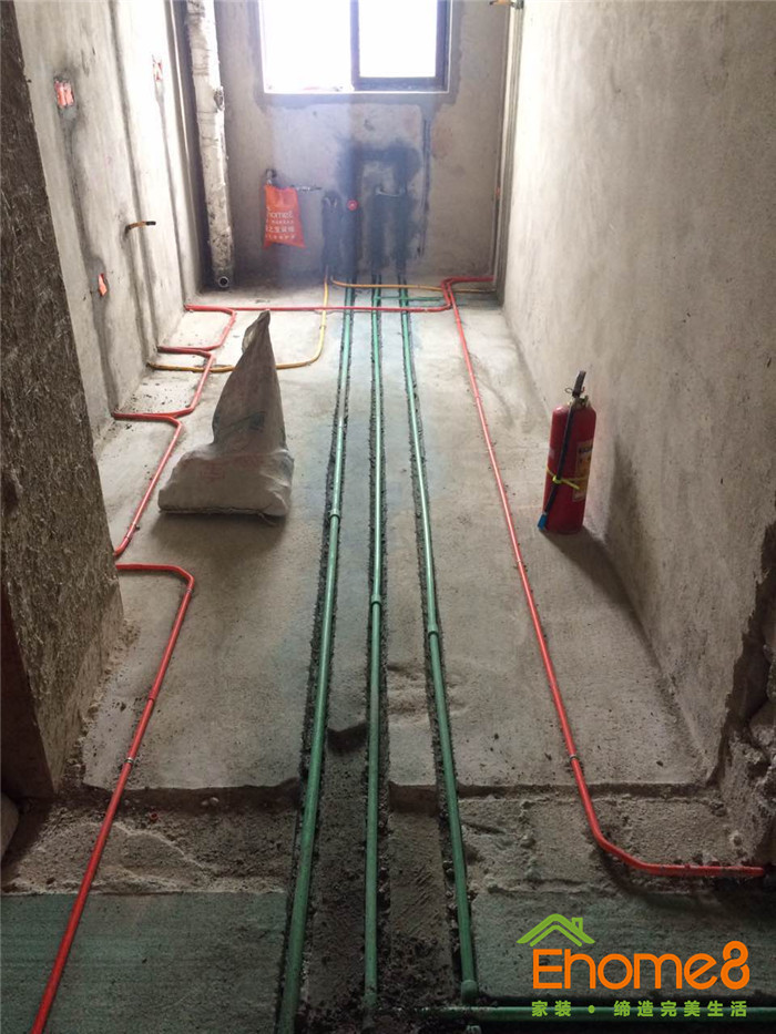 水電施工,單管單槽,按國標工藝走線管水管,采用德系歐標的水電材料