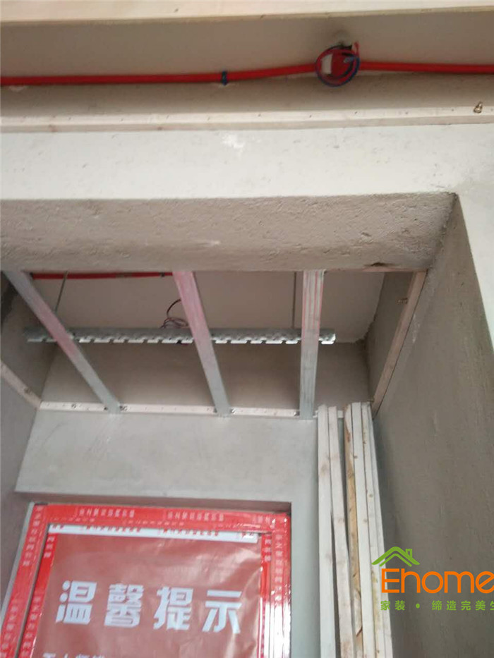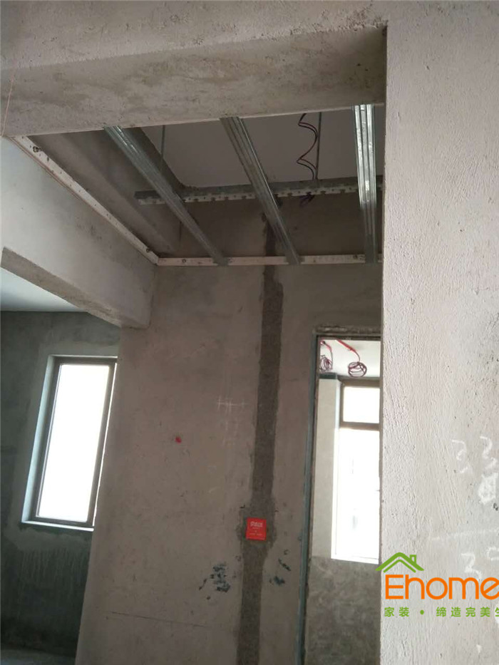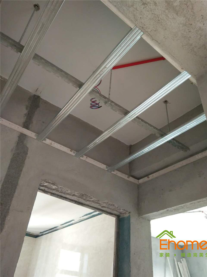 采用輕鋼龍骨搭建吊頂框架,吊桿50公分,主骨40公分,副骨30公分
