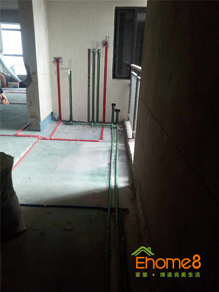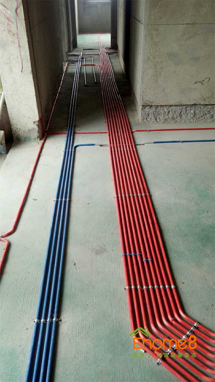 單管單槽,按國標工藝走線管水管,橫平豎直,八字拐角,采用德系歐標的水電材料