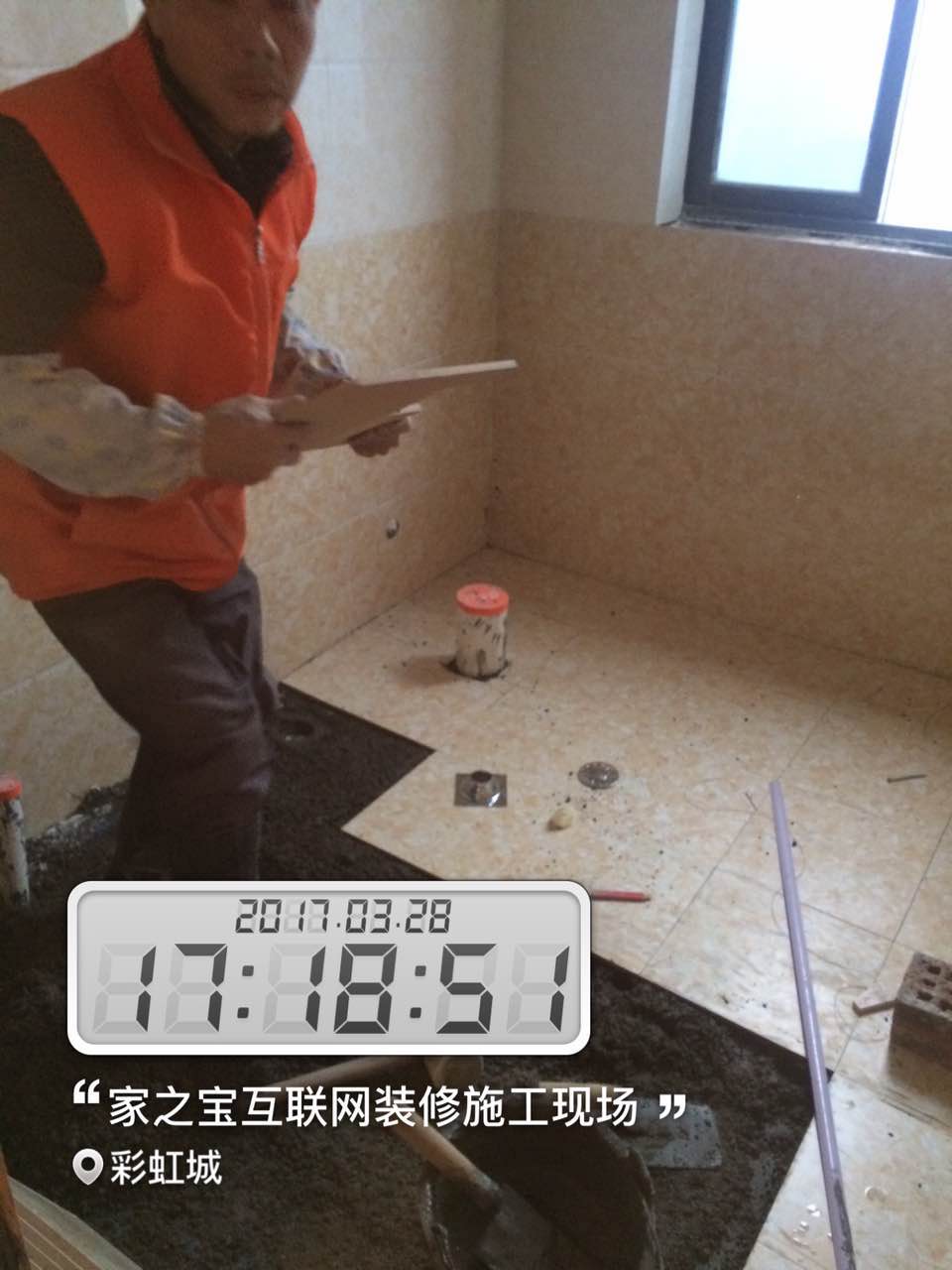 瓦工施工,平整對縫,鋪貼完畢即刻進行成品保護,鋪好地膜。