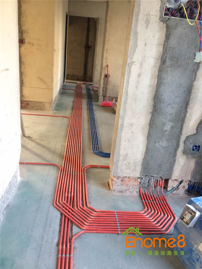 水電施工,單管單槽,按國標工藝走線管水管,采用德系歐標的水電材料