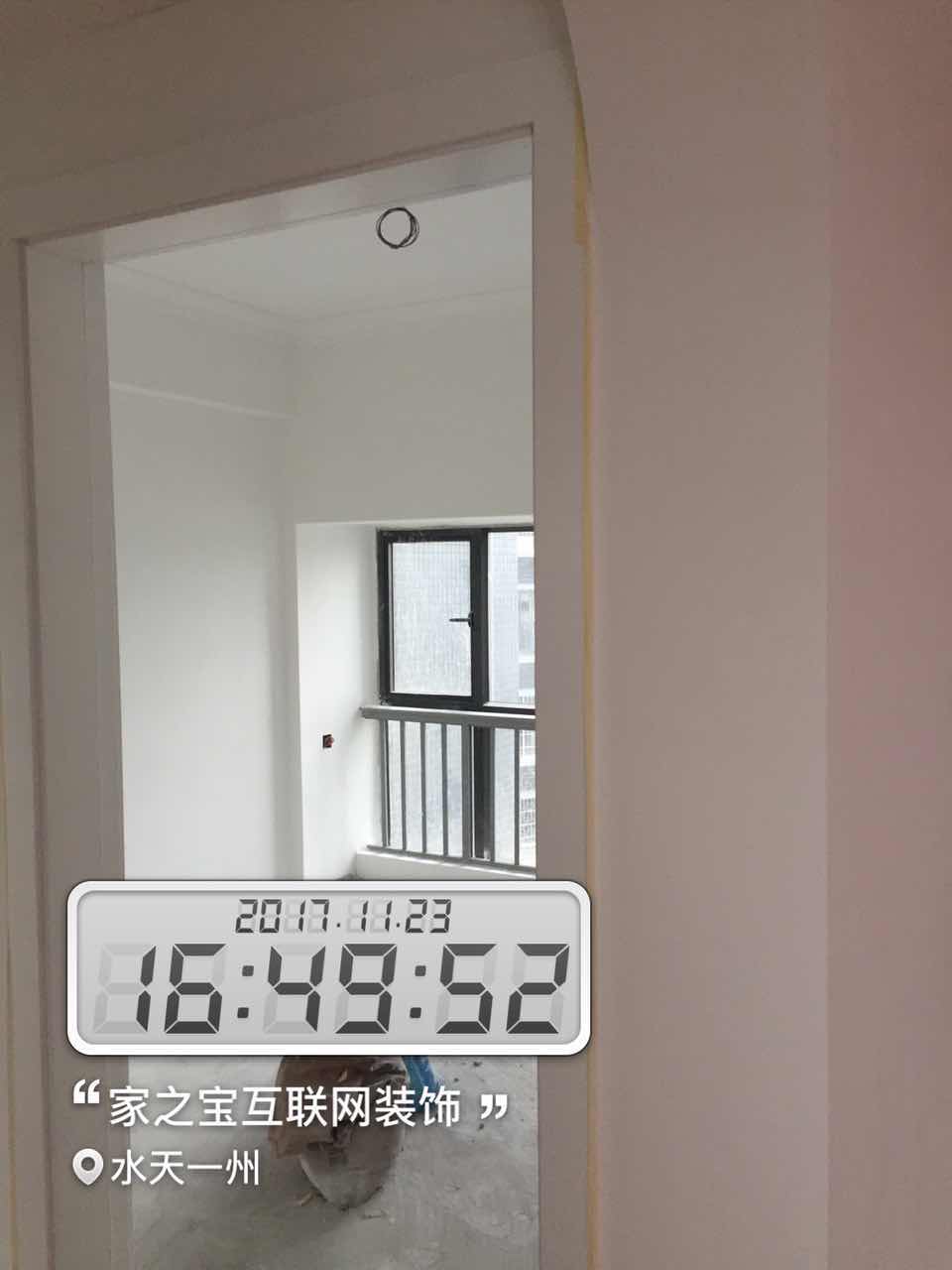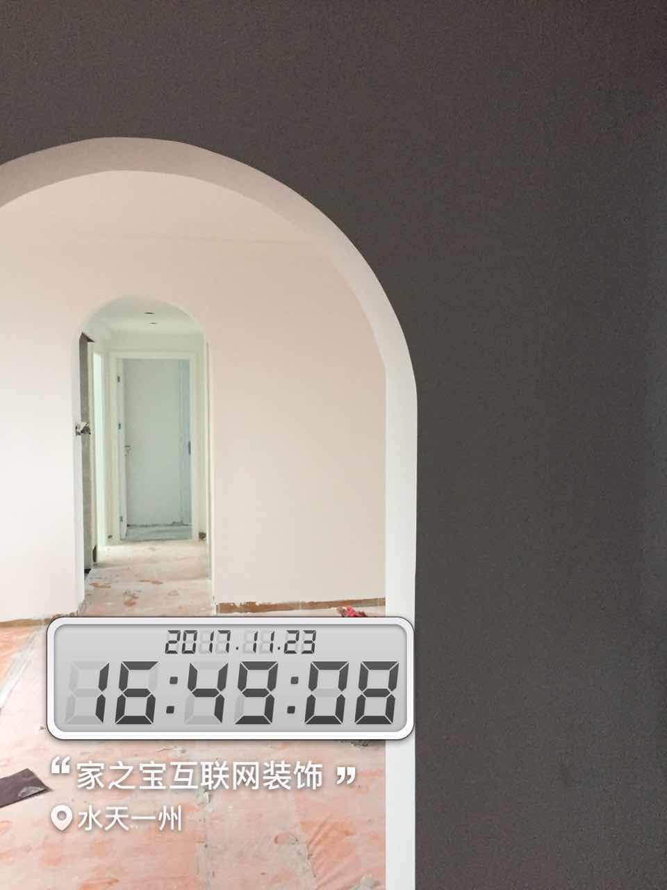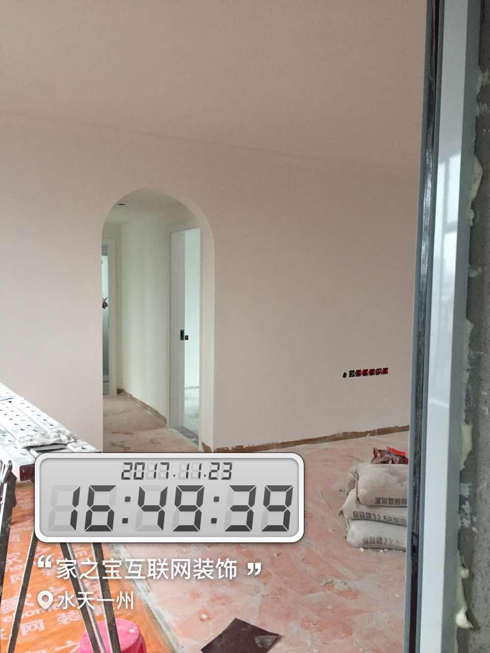 墻磚鋪貼,使用水平儀投射水平線,陽角處采用磨邊45°碰角工藝。